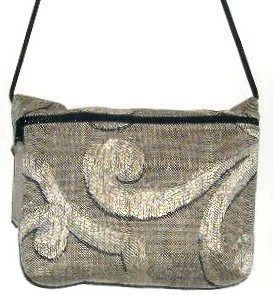 BIG IVORY SWIRLS ON LIGHT TAN BACKGROUND, COORDINATED LINING, 9"W X 6"T X 1 1/2 " D, 50 " PARACHUTE CORD, LEATHER ZIPPER PULL