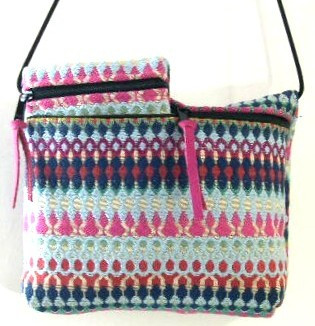 SHADES OF BLUE AND PINK ON THIS STURDY FABRIC, COORDINATED LINING, 9"W X 6"T X