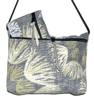 PALE GREEN WISP TYPE DESIGN ON LIGHT GREY BACKGROUND, COORDINATED LINING, 9"W X 6"T X