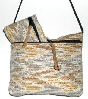 SOFT GOLD AND TAN FLAME STITCH ON IVORY BACKGROUND, COORDINATED LINING, 9"W X 6"T X