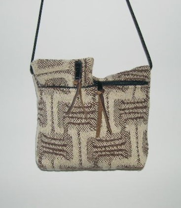 SHADES OF DARK BROWN SHAPES ON TAN BACKGROUND, COORDINATED LINING 8"w X 6"h X 1 1/2"d, 50" PARACHUTE CORD,