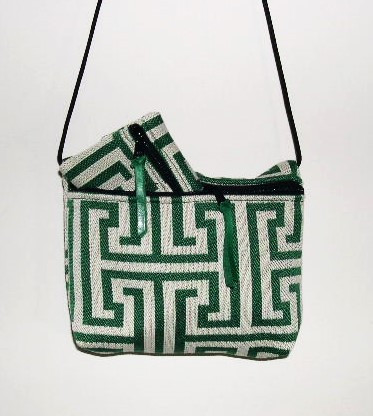 DARK GREEN MAZE DESIGN ON IVORY BACKGROUND, COORDINATED LINING,