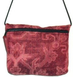 MUTED RED DESIGN ON DARK RED BACKGROUND, COORDINATED LINING, 9"W X 6"T X 1 1/2 " D, 50 " PARACHUTE CORD, LEATHER ZIPPER PULL