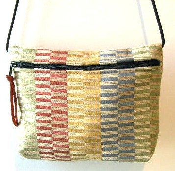 TEXTURED STRIPES OF RED, YELLOW, GREEN, BLUE & TAN, COORDINATED LINING, 9"W X 6"T X 1 1/2 " D,